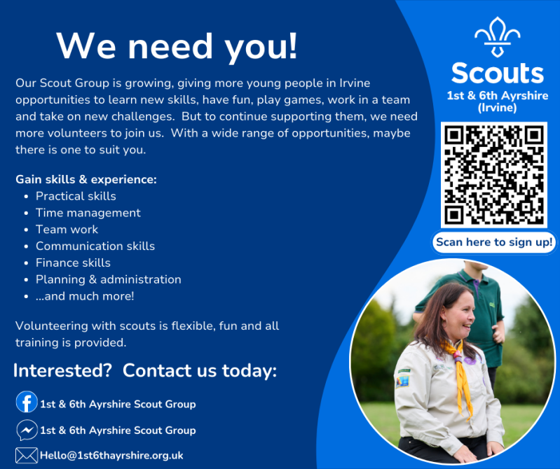 "Volunteering with the 1st and 6th Ayrshire Sea Scouts has been incredibly rewarding. It's wonderful to see the young people develop new skills and friendships."